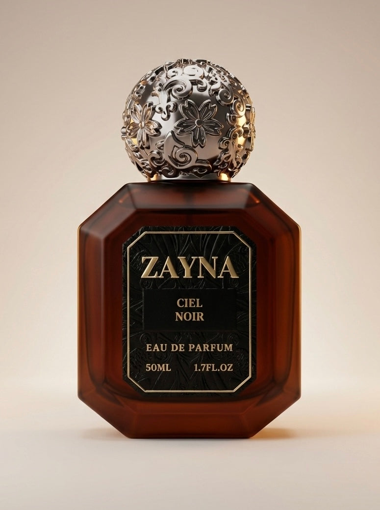 Ciel Noir, inspired by Bleu de Chanel Parfum Chanel, is a sophisticated Woody Aromatic scent designed for men. It opens with fresh top notes of Lemon Zest, Bergamot, Mint, and Artemisia, followed by a heart of Lavender, Pineapple, Geranium, and Green Notes. The fragrance settles into a rich base of Sandalwood, Cedar, Amberwood, Iso E Super, and Tonka Bean for enduring depth.